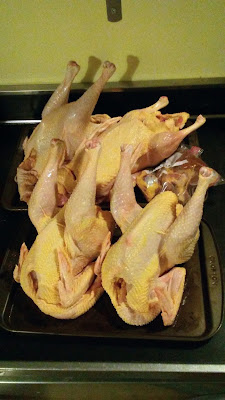 So far this year I have put the following in the freezer/table: 12 chickens, 23 quail, 1 duck, Have also sold exactly $100 in birds. Hope to double the "meat" numbers by season's end.